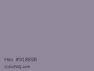 Hex #91889b Color is a normal violet color and the nearest color is Manatee Crayola #8d90a1. Hex code #91889b and RGB value is rgb(145,136,155). In RGB color space, this color is composed of 57% red, 53% green, 61% blue, In CMYK color space, this color is composed of 6% cyan, 12% magenta, 0% yellow , 39% black , In HSL color space, this color has a hue angle of 268° , 9% saturation and 57% lightness.
