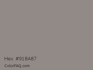 Hex #918a87 Color is a normal orange color and the nearest color is Taupe Gray #8b8589. Hex code #918a87 and RGB value is rgb(145,138,135). In RGB color space, this color is composed of 57% red, 54% green, 53% blue, In CMYK color space, this color is composed of 0% cyan, 5% magenta, 7% yellow , 43% black , In HSL color space, this color has a hue angle of 18° , 4% saturation and 55% lightness.