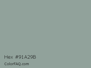 Hex #91a29b Color is a normal green color and the nearest color is Morning Blue #8da399. Hex code #91a29b and RGB value is rgb(145,162,155). In RGB color space, this color is composed of 57% red, 64% green, 61% blue, In CMYK color space, this color is composed of 10% cyan, 0% magenta, 4% yellow , 36% black , In HSL color space, this color has a hue angle of 155° , 8% saturation and 60% lightness.