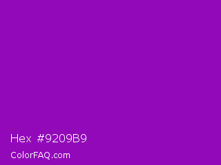 Hex #9209b9 Color is a normal purple color and the nearest color is Violet RYB #8601af. Hex code #9209b9 and RGB value is rgb(146,9,185). In RGB color space, this color is composed of 57% red, 4% green, 73% blue, In CMYK color space, this color is composed of 21% cyan, 95% magenta, 0% yellow , 27% black , In HSL color space, this color has a hue angle of 287° , 91% saturation and 38% lightness.