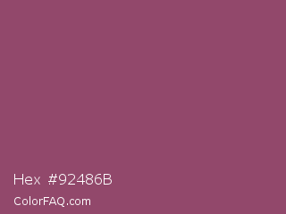 Hex #92486b Color is a normal rose color and the nearest color is Twilight Lavender #8a496b. Hex code #92486b and RGB value is rgb(146,72,107). In RGB color space, this color is composed of 57% red, 28% green, 42% blue, In CMYK color space, this color is composed of 0% cyan, 51% magenta, 27% yellow , 43% black , In HSL color space, this color has a hue angle of 332° , 34% saturation and 43% lightness.
