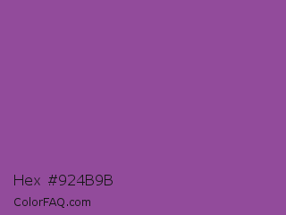 Hex #924b9b Color is a normal magenta color and the nearest color is Purpureus #9a4eae. Hex code #924b9b and RGB value is rgb(146,75,155). In RGB color space, this color is composed of 57% red, 29% green, 61% blue, In CMYK color space, this color is composed of 6% cyan, 52% magenta, 0% yellow , 39% black , In HSL color space, this color has a hue angle of 293° , 35% saturation and 45% lightness.
