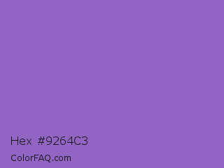 Hex #9264c3 Color is a normal violet color and the nearest color is Amethyst #9966cc. Hex code #9264c3 and RGB value is rgb(146,100,195). In RGB color space, this color is composed of 57% red, 39% green, 76% blue, In CMYK color space, this color is composed of 25% cyan, 49% magenta, 0% yellow , 24% black , In HSL color space, this color has a hue angle of 269° , 44% saturation and 58% lightness.