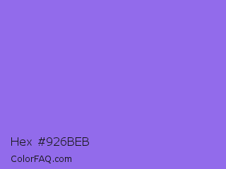 Hex #926beb Color is a light indigo color and the nearest color is Medium Purple #9370db. Hex code #926beb and RGB value is rgb(146,107,235). In RGB color space, this color is composed of 57% red, 42% green, 92% blue, In CMYK color space, this color is composed of 38% cyan, 54% magenta, 0% yellow , 8% black , In HSL color space, this color has a hue angle of 258° , 76% saturation and 67% lightness.