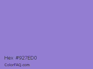 Hex #927ed0 Color is a light indigo color and the nearest color is Lilac Bush #9874d3. Hex code #927ed0 and RGB value is rgb(146,126,208). In RGB color space, this color is composed of 57% red, 49% green, 82% blue, In CMYK color space, this color is composed of 30% cyan, 39% magenta, 0% yellow , 18% black , In HSL color space, this color has a hue angle of 255° , 47% saturation and 65% lightness.