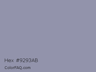 Hex #9293ab Color is a light blue color and the nearest color is Cool Grey #8c92ac. Hex code #9293ab and RGB value is rgb(146,147,171). In RGB color space, this color is composed of 57% red, 58% green, 67% blue, In CMYK color space, this color is composed of 15% cyan, 14% magenta, 0% yellow , 33% black , In HSL color space, this color has a hue angle of 238° , 13% saturation and 62% lightness.