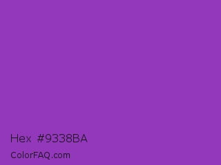Hex #9338ba Color is a normal purple color and the nearest color is Dark Orchid #9932cc. Hex code #9338ba and RGB value is rgb(147,56,186). In RGB color space, this color is composed of 58% red, 22% green, 73% blue, In CMYK color space, this color is composed of 21% cyan, 70% magenta, 0% yellow , 27% black , In HSL color space, this color has a hue angle of 282° , 54% saturation and 47% lightness.