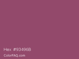 Hex #93496b Color is a normal rose color and the nearest color is Twilight Lavender #8a496b. Hex code #93496b and RGB value is rgb(147,73,107). In RGB color space, this color is composed of 58% red, 29% green, 42% blue, In CMYK color space, this color is composed of 0% cyan, 50% magenta, 27% yellow , 42% black , In HSL color space, this color has a hue angle of 332° , 34% saturation and 43% lightness.