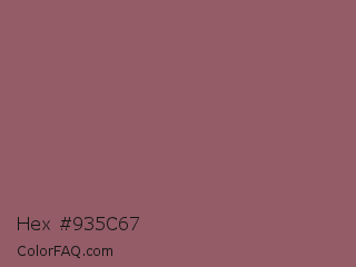 Hex #935c67 Color is a normal red color and the nearest color is Mauve Taupe #915f6d. Hex code #935c67 and RGB value is rgb(147,92,103). In RGB color space, this color is composed of 58% red, 36% green, 40% blue, In CMYK color space, this color is composed of 0% cyan, 37% magenta, 30% yellow , 42% black , In HSL color space, this color has a hue angle of 348° , 23% saturation and 47% lightness.