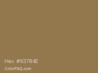 Hex #93784e Color is a normal orange color and the nearest color is Pale Brown #987654. Hex code #93784e and RGB value is rgb(147,120,78). In RGB color space, this color is composed of 58% red, 47% green, 31% blue, In CMYK color space, this color is composed of 0% cyan, 18% magenta, 47% yellow , 42% black , In HSL color space, this color has a hue angle of 37° , 31% saturation and 44% lightness.