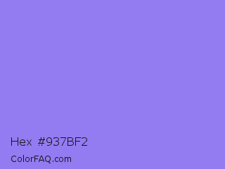 Hex #937bf2 Color is a light indigo color and the nearest color is Medium Purple #9370db. Hex code #937bf2 and RGB value is rgb(147,123,242). In RGB color space, this color is composed of 58% red, 48% green, 95% blue, In CMYK color space, this color is composed of 39% cyan, 49% magenta, 0% yellow , 5% black , In HSL color space, this color has a hue angle of 252° , 82% saturation and 72% lightness.