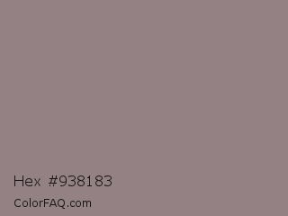 Hex #938183 Color is a normal red color and the nearest color is Cinereous #98817b. Hex code #938183 and RGB value is rgb(147,129,131). In RGB color space, this color is composed of 58% red, 51% green, 51% blue, In CMYK color space, this color is composed of 0% cyan, 12% magenta, 11% yellow , 42% black , In HSL color space, this color has a hue angle of 353° , 8% saturation and 54% lightness.