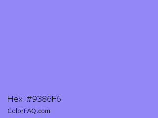 Hex #9386f6 Color is a light indigo color and the nearest color is Portage #8b9fee. Hex code #9386f6 and RGB value is rgb(147,134,246). In RGB color space, this color is composed of 58% red, 53% green, 96% blue, In CMYK color space, this color is composed of 40% cyan, 46% magenta, 0% yellow , 4% black , In HSL color space, this color has a hue angle of 247° , 86% saturation and 75% lightness.