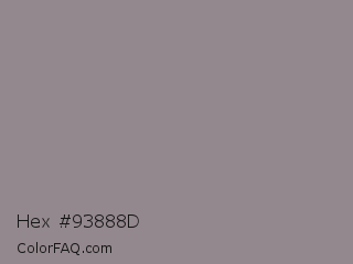 Hex #93888d Color is a normal rose color and the nearest color is Venus #928590. Hex code #93888d and RGB value is rgb(147,136,141). In RGB color space, this color is composed of 58% red, 53% green, 55% blue, In CMYK color space, this color is composed of 0% cyan, 7% magenta, 4% yellow , 42% black , In HSL color space, this color has a hue angle of 333° , 5% saturation and 55% lightness.