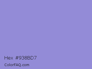 Hex #938bd7 Color is a light indigo color and the nearest color is Chetwode Blue #8581d9. Hex code #938bd7 and RGB value is rgb(147,139,215). In RGB color space, this color is composed of 58% red, 55% green, 84% blue, In CMYK color space, this color is composed of 32% cyan, 35% magenta, 0% yellow , 16% black , In HSL color space, this color has a hue angle of 246° , 49% saturation and 69% lightness.