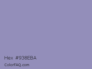 Hex #938eba Color is a light indigo color and the nearest color is Cool Grey #8c92ac. Hex code #938eba and RGB value is rgb(147,142,186). In RGB color space, this color is composed of 58% red, 56% green, 73% blue, In CMYK color space, this color is composed of 21% cyan, 24% magenta, 0% yellow , 27% black , In HSL color space, this color has a hue angle of 247° , 24% saturation and 64% lightness.