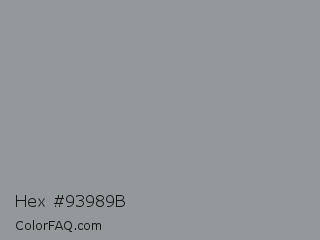 Hex #93989b Color is a normal blue color and the nearest color is Spanish Gray #989898. Hex code #93989b and RGB value is rgb(147,152,155). In RGB color space, this color is composed of 58% red, 60% green, 61% blue, In CMYK color space, this color is composed of 5% cyan, 2% magenta, 0% yellow , 39% black , In HSL color space, this color has a hue angle of 203° , 4% saturation and 59% lightness.
