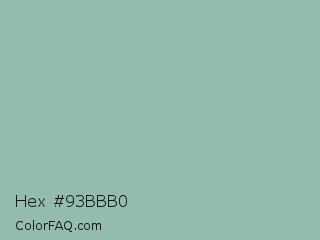 Hex #93bbb0 Color is a light cyan color and the nearest color is Summer Green #96bbab. Hex code #93bbb0 and RGB value is rgb(147,187,176). In RGB color space, this color is composed of 58% red, 73% green, 69% blue, In CMYK color space, this color is composed of 21% cyan, 0% magenta, 6% yellow , 27% black , In HSL color space, this color has a hue angle of 164° , 23% saturation and 65% lightness.
