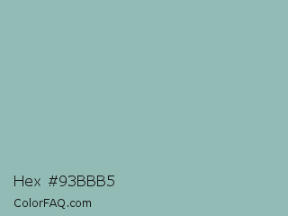 Hex #93bbb5 Color is a light cyan color and the nearest color is Shadow Green #9ac2b8. Hex code #93bbb5 and RGB value is rgb(147,187,181). In RGB color space, this color is composed of 58% red, 73% green, 71% blue, In CMYK color space, this color is composed of 21% cyan, 0% magenta, 3% yellow , 27% black , In HSL color space, this color has a hue angle of 171° , 23% saturation and 65% lightness.