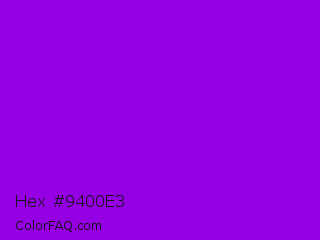 Hex #9400e3 Color is a normal purple color and the nearest color is Dark Violet #9400d3. Hex code #9400e3 and RGB value is rgb(148,0,227). In RGB color space, this color is composed of 58% red, 0% green, 89% blue, In CMYK color space, this color is composed of 35% cyan, 100% magenta, 0% yellow , 11% black , In HSL color space, this color has a hue angle of 279° , 100% saturation and 45% lightness.