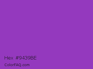 Hex #9439be Color is a normal purple color and the nearest color is Dark Orchid #9932cc. Hex code #9439be and RGB value is rgb(148,57,190). In RGB color space, this color is composed of 58% red, 22% green, 75% blue, In CMYK color space, this color is composed of 22% cyan, 70% magenta, 0% yellow , 25% black , In HSL color space, this color has a hue angle of 281° , 54% saturation and 48% lightness.