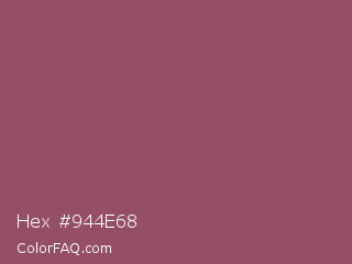 Hex #944e68 Color is a normal rose color and the nearest color is Twilight Lavender #8a496b. Hex code #944e68 and RGB value is rgb(148,78,104). In RGB color space, this color is composed of 58% red, 31% green, 41% blue, In CMYK color space, this color is composed of 0% cyan, 47% magenta, 30% yellow , 42% black , In HSL color space, this color has a hue angle of 338° , 31% saturation and 44% lightness.
