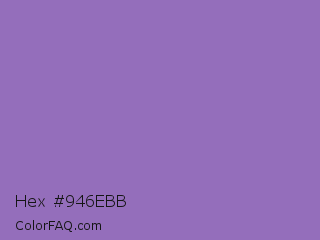 Hex #946ebb Color is a normal violet color and the nearest color is Wisteria #9771b5. Hex code #946ebb and RGB value is rgb(148,110,187). In RGB color space, this color is composed of 58% red, 43% green, 73% blue, In CMYK color space, this color is composed of 21% cyan, 41% magenta, 0% yellow , 27% black , In HSL color space, this color has a hue angle of 270° , 36% saturation and 58% lightness.