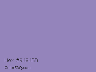 Hex #9484bb Color is a light indigo color and the nearest color is Lavender Purple #967bb6. Hex code #9484bb and RGB value is rgb(148,132,187). In RGB color space, this color is composed of 58% red, 52% green, 73% blue, In CMYK color space, this color is composed of 21% cyan, 29% magenta, 0% yellow , 27% black , In HSL color space, this color has a hue angle of 257° , 29% saturation and 63% lightness.