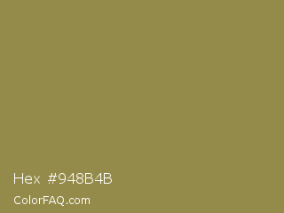 Hex #948b4b Color is a normal yellow color and the nearest color is Dark Tan #918151. Hex code #948b4b and RGB value is rgb(148,139,75). In RGB color space, this color is composed of 58% red, 55% green, 29% blue, In CMYK color space, this color is composed of 0% cyan, 6% magenta, 49% yellow , 42% black , In HSL color space, this color has a hue angle of 53° , 33% saturation and 44% lightness.