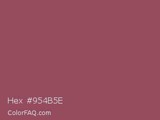 Hex #954b5e Color is a normal red color and the nearest color is Vin Rouge #983d61. Hex code #954b5e and RGB value is rgb(149,75,94). In RGB color space, this color is composed of 58% red, 29% green, 37% blue, In CMYK color space, this color is composed of 0% cyan, 50% magenta, 37% yellow , 42% black , In HSL color space, this color has a hue angle of 345° , 33% saturation and 44% lightness.