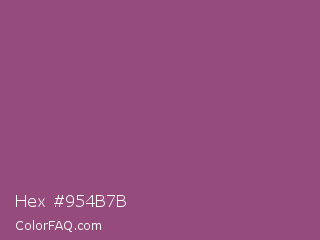 Hex #954b7b Color is a normal magenta color and the nearest color is Sugar Plum #914e75. Hex code #954b7b and RGB value is rgb(149,75,123). In RGB color space, this color is composed of 58% red, 29% green, 48% blue, In CMYK color space, this color is composed of 0% cyan, 50% magenta, 17% yellow , 42% black , In HSL color space, this color has a hue angle of 321° , 33% saturation and 44% lightness.