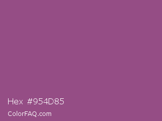 Hex #954d85 Color is a normal magenta color and the nearest color is Razzmic Berry #8d4e85. Hex code #954d85 and RGB value is rgb(149,77,133). In RGB color space, this color is composed of 58% red, 30% green, 52% blue, In CMYK color space, this color is composed of 0% cyan, 48% magenta, 11% yellow , 42% black , In HSL color space, this color has a hue angle of 313° , 32% saturation and 44% lightness.