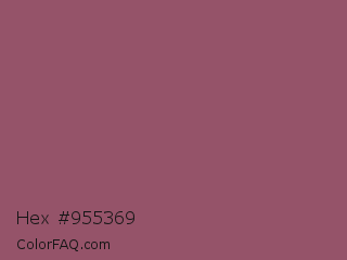 Hex #955369 Color is a normal rose color and the nearest color is Mauve Taupe #915f6d. Hex code #955369 and RGB value is rgb(149,83,105). In RGB color space, this color is composed of 58% red, 33% green, 41% blue, In CMYK color space, this color is composed of 0% cyan, 44% magenta, 30% yellow , 42% black , In HSL color space, this color has a hue angle of 340° , 28% saturation and 45% lightness.
