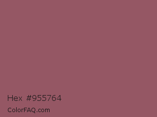 Hex #955764 Color is a normal red color and the nearest color is Rose Taupe #905d5d. Hex code #955764 and RGB value is rgb(149,87,100). In RGB color space, this color is composed of 58% red, 34% green, 39% blue, In CMYK color space, this color is composed of 0% cyan, 42% magenta, 33% yellow , 42% black , In HSL color space, this color has a hue angle of 347° , 26% saturation and 46% lightness.
