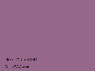 Hex #95688b Color is a normal magenta color and the nearest color is Strikemaster #956387. Hex code #95688b and RGB value is rgb(149,104,139). In RGB color space, this color is composed of 58% red, 41% green, 55% blue, In CMYK color space, this color is composed of 0% cyan, 30% magenta, 7% yellow , 42% black , In HSL color space, this color has a hue angle of 313° , 18% saturation and 50% lightness.
