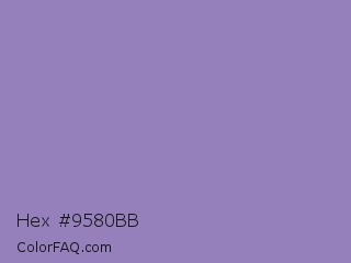 Hex #9580bb Color is a light violet color and the nearest color is Lavender Purple #967bb6. Hex code #9580bb and RGB value is rgb(149,128,187). In RGB color space, this color is composed of 58% red, 50% green, 73% blue, In CMYK color space, this color is composed of 20% cyan, 32% magenta, 0% yellow , 27% black , In HSL color space, this color has a hue angle of 261° , 30% saturation and 62% lightness.
