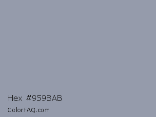Hex #959bab Color is a light blue color and the nearest color is Manatee #979aaa. Hex code #959bab and RGB value is rgb(149,155,171). In RGB color space, this color is composed of 58% red, 61% green, 67% blue, In CMYK color space, this color is composed of 13% cyan, 9% magenta, 0% yellow , 33% black , In HSL color space, this color has a hue angle of 224° , 12% saturation and 63% lightness.