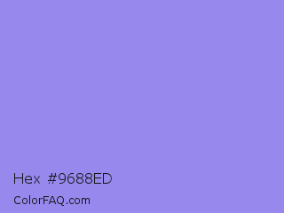 Hex #9688ed Color is a light indigo color and the nearest color is Portage #8b9fee. Hex code #9688ed and RGB value is rgb(150,136,237). In RGB color space, this color is composed of 59% red, 53% green, 93% blue, In CMYK color space, this color is composed of 37% cyan, 43% magenta, 0% yellow , 7% black , In HSL color space, this color has a hue angle of 248° , 74% saturation and 73% lightness.