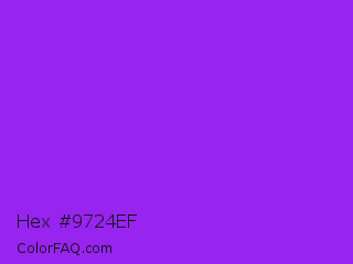 Hex #9724ef Color is a normal purple color and the nearest color is Veronica #a020f0. Hex code #9724ef and RGB value is rgb(151,36,239). In RGB color space, this color is composed of 59% red, 14% green, 94% blue, In CMYK color space, this color is composed of 37% cyan, 85% magenta, 0% yellow , 6% black , In HSL color space, this color has a hue angle of 274° , 86% saturation and 54% lightness.