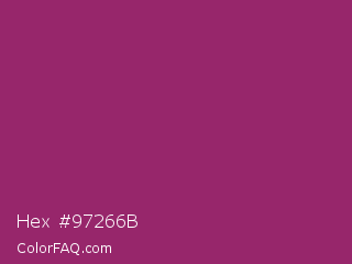 Hex #97266b Color is a normal magenta color and the nearest color is Amaranth Deep Purple #9f2b68. Hex code #97266b and RGB value is rgb(151,38,107). In RGB color space, this color is composed of 59% red, 15% green, 42% blue, In CMYK color space, this color is composed of 0% cyan, 75% magenta, 29% yellow , 41% black , In HSL color space, this color has a hue angle of 323° , 60% saturation and 37% lightness.