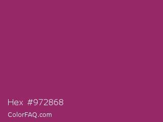 Hex #972868 Color is a normal magenta color and the nearest color is Amaranth Deep Purple #9f2b68. Hex code #972868 and RGB value is rgb(151,40,104). In RGB color space, this color is composed of 59% red, 16% green, 41% blue, In CMYK color space, this color is composed of 0% cyan, 74% magenta, 31% yellow , 41% black , In HSL color space, this color has a hue angle of 325° , 58% saturation and 37% lightness.