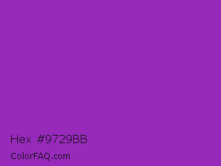 Hex #9729bb Color is a normal purple color and the nearest color is Dark Orchid #9932cc. Hex code #9729bb and RGB value is rgb(151,41,187). In RGB color space, this color is composed of 59% red, 16% green, 73% blue, In CMYK color space, this color is composed of 19% cyan, 78% magenta, 0% yellow , 27% black , In HSL color space, this color has a hue angle of 285° , 64% saturation and 45% lightness.