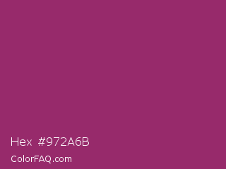Hex #972a6b Color is a normal magenta color and the nearest color is Amaranth Deep Purple #9f2b68. Hex code #972a6b and RGB value is rgb(151,42,107). In RGB color space, this color is composed of 59% red, 16% green, 42% blue, In CMYK color space, this color is composed of 0% cyan, 72% magenta, 29% yellow , 41% black , In HSL color space, this color has a hue angle of 324° , 56% saturation and 38% lightness.