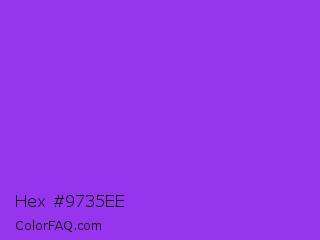 Hex #9735ee Color is a normal purple color and the nearest color is Blue Violet #8a2be2. Hex code #9735ee and RGB value is rgb(151,53,238). In RGB color space, this color is composed of 59% red, 21% green, 93% blue, In CMYK color space, this color is composed of 37% cyan, 78% magenta, 0% yellow , 7% black , In HSL color space, this color has a hue angle of 272° , 84% saturation and 57% lightness.