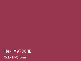 Hex #97364e Color is a normal red color and the nearest color is Quinacridone Magenta #8e3a59. Hex code #97364e and RGB value is rgb(151,54,78). In RGB color space, this color is composed of 59% red, 21% green, 31% blue, In CMYK color space, this color is composed of 0% cyan, 64% magenta, 48% yellow , 41% black , In HSL color space, this color has a hue angle of 345° , 47% saturation and 40% lightness.