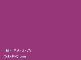 Hex #973779 Color is a normal magenta color and the nearest color is Maximum Red Purple #a63a79. Hex code #973779 and RGB value is rgb(151,55,121). In RGB color space, this color is composed of 59% red, 22% green, 47% blue, In CMYK color space, this color is composed of 0% cyan, 64% magenta, 20% yellow , 41% black , In HSL color space, this color has a hue angle of 319° , 47% saturation and 40% lightness.