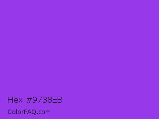 Hex #9738eb Color is a normal purple color and the nearest color is Blue Violet #8a2be2. Hex code #9738eb and RGB value is rgb(151,56,235). In RGB color space, this color is composed of 59% red, 22% green, 92% blue, In CMYK color space, this color is composed of 36% cyan, 76% magenta, 0% yellow , 8% black , In HSL color space, this color has a hue angle of 272° , 82% saturation and 57% lightness.
