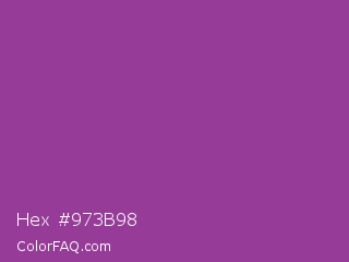 Hex #973b98 Color is a normal magenta color and the nearest color is Plum #8e4585. Hex code #973b98 and RGB value is rgb(151,59,152). In RGB color space, this color is composed of 59% red, 23% green, 60% blue, In CMYK color space, this color is composed of 1% cyan, 61% magenta, 0% yellow , 40% black , In HSL color space, this color has a hue angle of 299° , 44% saturation and 41% lightness.