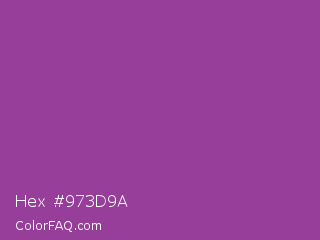 Hex #973d9a Color is a normal magenta color and the nearest color is Plum #8e4585. Hex code #973d9a and RGB value is rgb(151,61,154). In RGB color space, this color is composed of 59% red, 24% green, 60% blue, In CMYK color space, this color is composed of 2% cyan, 60% magenta, 0% yellow , 40% black , In HSL color space, this color has a hue angle of 298° , 43% saturation and 42% lightness.