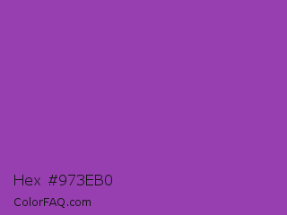 Hex #973eb0 Color is a normal purple color and the nearest color is Purpureus #9a4eae. Hex code #973eb0 and RGB value is rgb(151,62,176). In RGB color space, this color is composed of 59% red, 24% green, 69% blue, In CMYK color space, this color is composed of 14% cyan, 65% magenta, 0% yellow , 31% black , In HSL color space, this color has a hue angle of 287° , 48% saturation and 47% lightness.